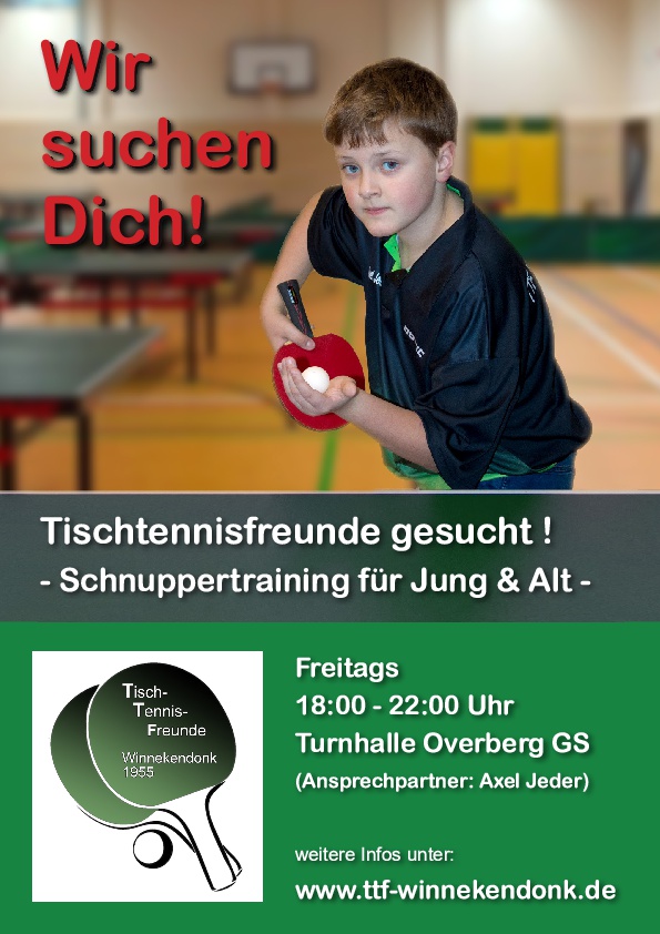 Einmal die Woche trainiere ich in Winnekendonk beim TTF-Winnekendonk 1955, freitags ab 18 Uhr in der Turnhalle der Overberg Grundschule.